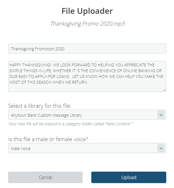 Upload your message to the Content Manager